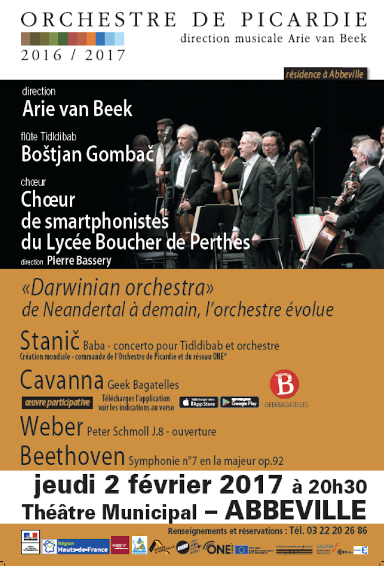 Žiga Stanič: Baba, for Neanderthal flute and orchestra. Performed by Orchestre de Picardie; Arie van Beek – conductor, Boštjan Gombač – flute. Concerts in Théâtre Municipal – Abbevile; Cité de la Musique et de la Danse – Soissons; La Faiencerie-Theatre – Creil.