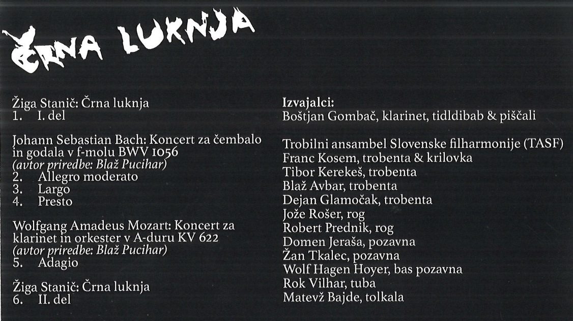 New CD release. Žiga Stanič: Black Hole [Črna luknja], Trobilni Ansambel Slovenske Filharmonije – TASF, Boštjan Gombač – opt. Long Play, ZKP RTV 115455